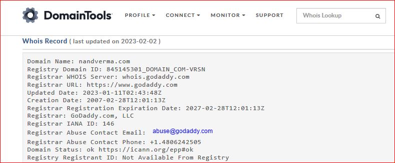 Also, just to note: the domain nandverma.com (as of 02-04-2023) is in the process of being transferred from GoDaddy to MilesWeb, as shown in the screenshot. The domain hasn’t expired—it’s just in transition.